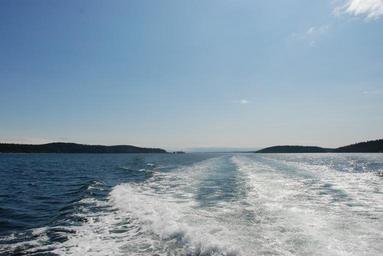 Keywords: water foam white wake boat golf horizon landscape