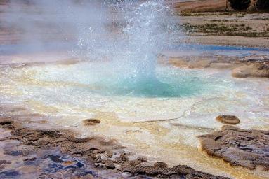 Keywords: water geyser steam yellowstone national park wyoming nature landscape scenery colorful color deposits sinter hot volcanic national park tourist attraction
