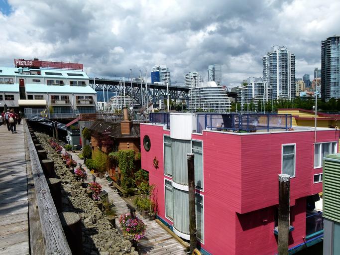 Keywords: water housing bridge water buildings plants walkway granville island vancouver british columbia canada
