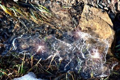Keywords: water ice frozen source nature bubble bach green river frisch winter air bubbles reflection transparent water surface mirroring