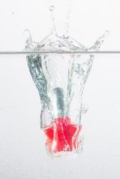 Keywords: water inject red spray water splashes spill over drip wave dynamics movement immersion