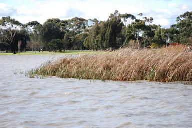 Keywords: water lake reeds vegetation outdoor environment tranquil sky blue
