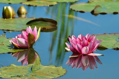 Keywords: water lilies pond aquatic plant nuphar lutea pond plant blossom bloom water mirroring lake rosengewächs nature pink garden bloom