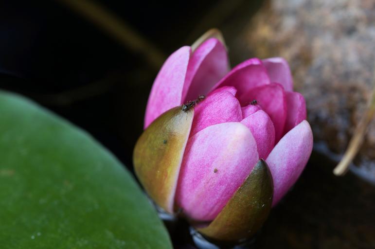 Keywords: water lily blossom bloom pink violet macro ant aphid