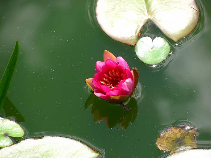 Keywords: water lily lotus lotos blossom nature plant pond colors green red