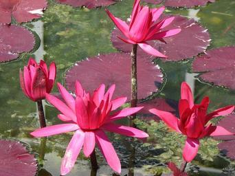 Keywords: water lily pink pond flower green acquatic waterlily floating flora summer growing lotus multiple colorful aquatic