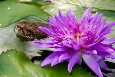 Keywords: water lily purple blossomed blossom bloom pond aquatic plant flower water nature bloom nuphar violet water flower teichplanze lake rose leaf green plant frog toad