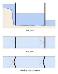 | Keywords: Water lock door principle.svg en A simple series of diagrams showing a water lock and two possible arrangements for the position of the doors 2015-04 own Olivier Cleynen other versions cc-zero SVG physics Uploaded with UploadWizard Diagrams in English Locks water transport |