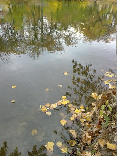Keywords: water pond autumn reflection park nature leaves yellow reflection in the water