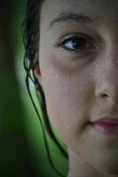 Keywords: water rain beautiful girl brunette brown green downpour weather natural spring portrait half face wet