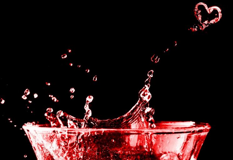 Keywords: water red heart glass spray inject drip spill over