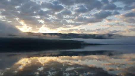 Keywords: water reflection mountain sunrise