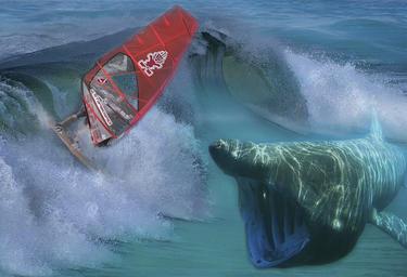 Keywords: water roller roll big wave large force sea ocean wave spray surfer man human sport nature shark mammal monster dangerous adventure lifestyle young composing digital creation