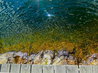 Keywords: water's edge lake bathing area snake mountain hägersten stockholm late-summer