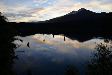 Keywords: water sky highlights waves trunk nature laguna landscapes conguillío national park chile sunset backlight mirror
