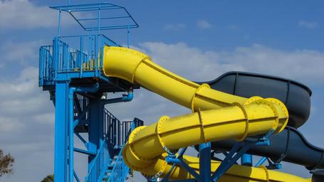 Keywords: water slide colorful hotel slide yellow blue cyprus ayia napa