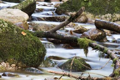 Keywords: water source nature local recreation flow rest water flow stones rocks green wood trees branches