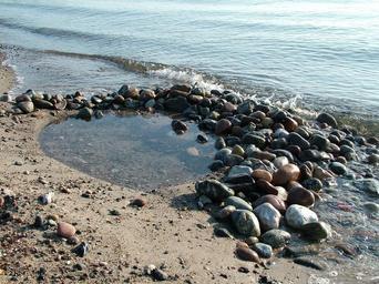 Keywords: water stone shiny wet wave coast beach sea flow bank ocean circle lichtspiel waters joy of life light romantic