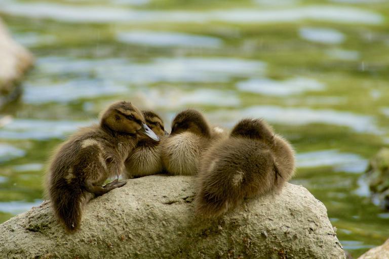 Keywords: water stone waterfowl mallards young rest cute