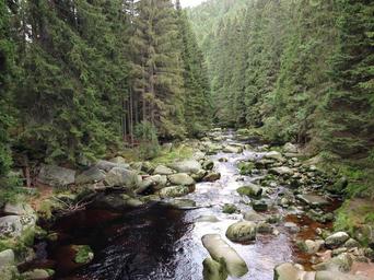 Keywords: water stones stream nature šumava forest czech republic creek bed clear