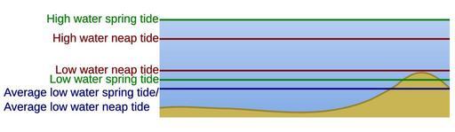| Keywords: Water surface level changes with tides.svg en A schematic of the water surface level changes with the tides Average low water spring or average low water neap tide; used as a reference which one is used depends on whether LWN or LWS is lowest The schematic was hand drawn based on an image from the book Leidraad voor het Stuurbrevet by Richard Vooren Paul Van den Keybus Note that the ALWS/ALWN is best replaced by LAT lowest astronomical tide in a next version of the image As this water level may be lower than ALWN/ALWS some of the text will be rendered obsolete File Water surface level changes with tides JPG own KVDP SVG conversion by Surachit 2009-10-06 <gallery> File Water surface level changes with tides mk svg language mk </gallery> Tides Tides |