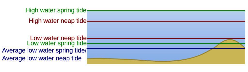 Keywords: Water surface level changes with tides.svg en A schematic of the water surface level changes with the tides Average low water spring or average low water neap tide; used as a reference which one is used depends on whether LWN or LWS is lowest The schematic was hand drawn based on an image from the book Leidraad voor het Stuurbrevet by Richard Vooren Paul Van den Keybus Note that the ALWS/ALWN is best replaced by LAT lowest astronomical tide in a next version of the image As this water level may be lower than ALWN/ALWS some of the text will be rendered obsolete File Water surface level changes with tides JPG own KVDP SVG conversion by Surachit 2009-10-06 <gallery> File Water surface level changes with tides mk svg language mk </gallery> Tides Tides |