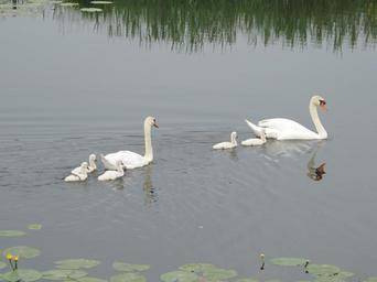 Keywords: water swans pullen birds gracefully waterfowl swimming white swan