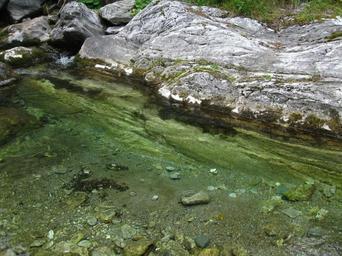 Keywords: water torrent mountain river stone rock reflection green stream forest landscape clear walk trail appennino