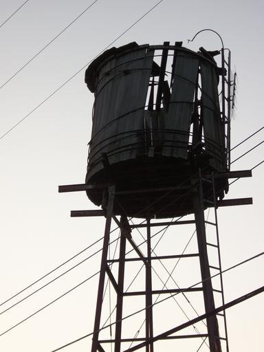 Keywords: water tower dawn power lines old wooden broken