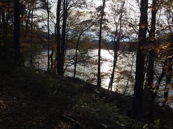 Keywords: water trees nature back light autumn sun mirroring lake waters bank mood landscape waldsee