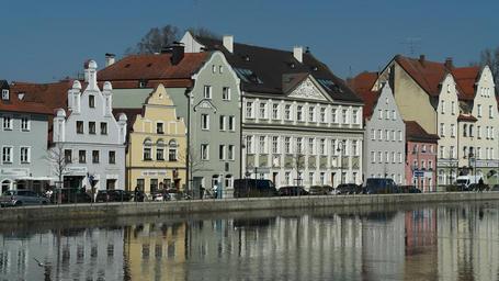 Keywords: water waters mirroring nature mood atmosphere light sun channel building landshut bavaria germany river