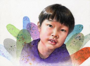 Keywords: watercolor portrait children's works art watercolor figure children face portraits boy colors asian