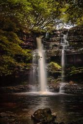 Keywords: waterfall bowlees summerhill force teesdale gibson's cave water cascade trees rock stream river flowing falls landscape motion tranquil tourism power