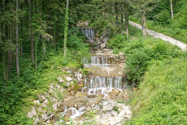 Keywords: waterfall cascade nature water bach creek water running splash waters forest trees landscape upper bavaria