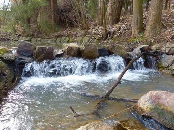 Keywords: waterfall dam water bubble cold frisch clean bach river stones pebbles block aesthetic branches foam build play game oxygen