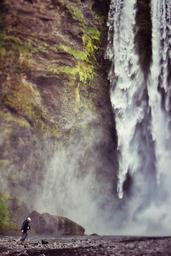 Keywords: waterfall a person majestic gullfoss iceland person travel outdoor summer mountain male tourism landscape water nature rock adventure