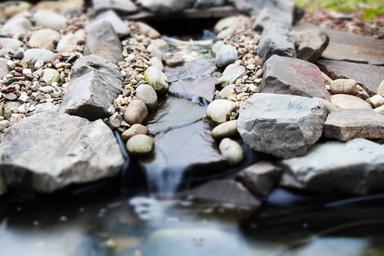 Keywords: waterfall pond stones tilt shift fluent water miniature