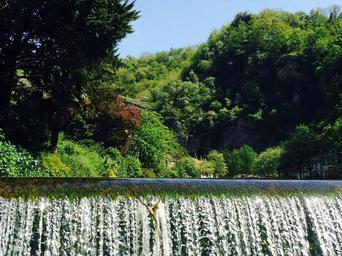 Keywords: waterfall splash water nature blue sky scenic cascade fresh green environment summer motion blue