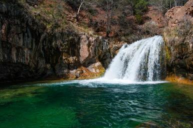 | Keywords: arizona coconino national forest coconinonationalforest forest service forestservice fossil creek fossilcreek red rock ranger district redrockrangerdistrict tonto national forest tontonationalforest usfs canyon creek forest outdoors riparian water camp verde campverde united states unitedstates waterfall outdoor landscape watercourse bluff ridge This large, natural waterfall on Fossil Creek is the destination of hikers on Waterfall Trail. A large, deep pool at the base of the fall is a popular swimming hole. Fossil Creek seems to appear out of nowhere, gushing 20,000 gallons a minute out of a series of springs at the bottom of a 1,600 foot deep canyon. Over the years these calcium laden waters have laid down huge deposits of a type of limestone called travertine. That rock-like substance encases whatever happens to fall into the streambed, forming the fossils for which the area is named. Fossil Creek is one of two "Wild and Scenic" rivers in Arizona. This special designation was achieved when the Irving power plant was decommissioned, and removal of flume and dam on the creek allowed this magnificent creek to once again flow freely through Arizona's arid landscape. Most people come to Fossil Creek to sunbathe, wade, hike and birdwatch. It's also a great place to take photographs. The lushness of the riparian area strikes a sharp contrast to the brittle desert that surrounds it. Increasing popularity has led to the Coconino and Tonto National Forests to implement a parking permit reservation system in 2016. Reserved parking permits give visitors the peace of mind knowing they'll have a spot waiting for them in this remote location. Many visitors drive two or three hours to get to the creek. The final descent to the creek at the bottom of a canyon is on an extremely rough, rocky jeep road. Photo by Deborah Lee Soltesz, March 2, 2016. Credit: USFS Coconino National Forest. Learn more about visiting Fossil Creek, Fossil Springs Wilderness, and the Coconino National Forest. This large, natural waterfall on Fossil Creek is the destination of hikers on Waterfall Trail. A large, deep pool at the base of the fall is a popular swimming hole. Fossil Creek seems to appear out of nowhere, gushing 20,000 gallons a minute out of a series of springs at the bottom of a 1,600 foot deep canyon. Over the years these calcium laden waters have laid down huge deposits of a type of limestone called travertine. That rock-like substance encases whatever happens to fall into the streambed, forming the fossils for which the area is named. Fossil Creek is one of two "Wild and Scenic" rivers in Arizona. This special designation was achieved when the Irving power plant was decommissioned, and removal of flume and dam on the creek allowed this magnificent creek to once again flow freely through Arizona's arid landscape. Most people come to Fossil Creek to sunbathe, wade, hike and birdwatch. It's also a great place to take photographs. The lushness of the riparian area strikes a sharp contrast to the brittle desert that surrounds it. Increasing popularity has led to the Coconino and Tonto National Forests to implement a parking permit reservation system in 2016. Reserved parking permits give visitors the peace of mind knowing they'll have a spot waiting for them in this remote location. Many visitors drive two or three hours to get to the creek. The final descent to the creek at the bottom of a canyon is on an extremely rough, rocky jeep road. Photo by Deborah Lee Soltesz, March 2, 2016. Credit: USFS Coconino National Forest. Learn more about visiting Fossil Creek, Fossil Springs Wilderness, and the Coconino National Forest. |