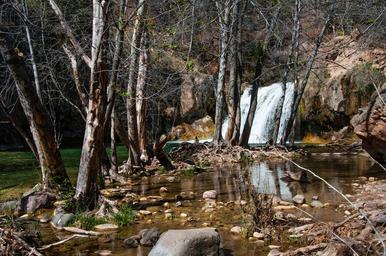 | Keywords: arizona coconino national forest coconinonationalforest forest service forestservice fossil creek fossilcreek red rock ranger district redrockrangerdistrict tonto national forest tontonationalforest usfs canyon creek forest outdoors riparian water camp verde campverde united states unitedstates outdoor This large, natural waterfall on Fossil Creek is the destination of hikers on Waterfall Trail. A large, deep pool at the base of the fall is a popular swimming hole. Fossil Creek seems to appear out of nowhere, gushing 20,000 gallons a minute out of a series of springs at the bottom of a 1,600 foot deep canyon. Over the years these calcium laden waters have laid down huge deposits of a type of limestone called travertine. That rock-like substance encases whatever happens to fall into the streambed, forming the fossils for which the area is named. Fossil Creek is one of two "Wild and Scenic" rivers in Arizona. This special designation was achieved when the Irving power plant was decommissioned, and removal of flume and dam on the creek allowed this magnificent creek to once again flow freely through Arizona's arid landscape. Most people come to Fossil Creek to sunbathe, wade, hike and birdwatch. It's also a great place to take photographs. The lushness of the riparian area strikes a sharp contrast to the brittle desert that surrounds it. Increasing popularity has led to the Coconino and Tonto National Forests to implement a parking permit reservation system in 2016. Reserved parking permits give visitors the peace of mind knowing they'll have a spot waiting for them in this remote location. Many visitors drive two or three hours to get to the creek. The final descent to the creek at the bottom of a canyon is on an extremely rough, rocky jeep road. Photo by Deborah Lee Soltesz, March 2, 2016. Credit: USFS Coconino National Forest. Learn more about visiting Fossil Creek, Fossil Springs Wilderness, and the Coconino National Forest. This large, natural waterfall on Fossil Creek is the destination of hikers on Waterfall Trail. A large, deep pool at the base of the fall is a popular swimming hole. Fossil Creek seems to appear out of nowhere, gushing 20,000 gallons a minute out of a series of springs at the bottom of a 1,600 foot deep canyon. Over the years these calcium laden waters have laid down huge deposits of a type of limestone called travertine. That rock-like substance encases whatever happens to fall into the streambed, forming the fossils for which the area is named. Fossil Creek is one of two "Wild and Scenic" rivers in Arizona. This special designation was achieved when the Irving power plant was decommissioned, and removal of flume and dam on the creek allowed this magnificent creek to once again flow freely through Arizona's arid landscape. Most people come to Fossil Creek to sunbathe, wade, hike and birdwatch. It's also a great place to take photographs. The lushness of the riparian area strikes a sharp contrast to the brittle desert that surrounds it. Increasing popularity has led to the Coconino and Tonto National Forests to implement a parking permit reservation system in 2016. Reserved parking permits give visitors the peace of mind knowing they'll have a spot waiting for them in this remote location. Many visitors drive two or three hours to get to the creek. The final descent to the creek at the bottom of a canyon is on an extremely rough, rocky jeep road. Photo by Deborah Lee Soltesz, March 2, 2016. Credit: USFS Coconino National Forest. Learn more about visiting Fossil Creek, Fossil Springs Wilderness, and the Coconino National Forest. |