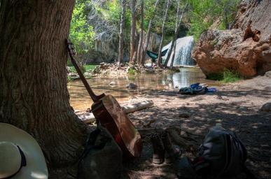 | Keywords: arizona camp verde campverde coconino national forest coconinonationalforest forest service forestservice fossil creek fossilcreek k20d national forest nationalforest pentax k20d pentaxk20d red rock ranger district redrockrangerdistrict tonto national forest tontonationalforest usfs verde valley verdevalley waterfall trail waterfalltrail aeb aebhdr aebshot canyon creek desert forest guitar hiking outdoors riparian spring springtime trail water waterfall united states unitedstates outdoor This large, natural waterfall on Fossil Creek is the destination of an easy, one mile hike on Waterfall Trail. A large, deep pool at the base of the fall is a popular swimming hole. Fossil Creek produces 20,000 gallons of water a minute from a series of springs at the bottom of a 1,600 foot deep canyon. This permanent water source has created a stunningly beautiful, green riparian zone rich with flora and fauna at the bottom of this arid canyon in Arizona's high desert. Travertine deposits encase whatever happens to fall into the streambed, forming the fossils for which the area is named. These deposits create deep pools along the length of the creek, providing opportunities to find more secluded swimming holes than the popular pool at the waterfall. Fossil Creek is one of two "Wild and Scenic" rivers in Arizona. This designation was achieved when the Irving power plant was decommissioned, and removal of flume and dam on the creek allowed the creek to flow free. Increasing popularity has led to the Coconino and Tonto National Forests to implement a parking permit reservation system in 2016. Reserved parking permits allow visitors to have a parking spot available in their chosen parking lot. Many visitors drive two or three hours to get to the creek. The final descent to the creek at the bottom of a canyon is on an extremely rough, rocky jeep road. In prior years, the area would often be closed to entry when it reached capacity, and potential visitors would be turned away after the long, difficult drive. Photo by Deborah Lee Soltesz, May 12, 2016. For trail and recreation information, see Fossil Creek, Fossil Springs Wilderness, and the Coconino National Forest. This large, natural waterfall on Fossil Creek is the destination of an easy, one mile hike on Waterfall Trail. A large, deep pool at the base of the fall is a popular swimming hole. Fossil Creek produces 20,000 gallons of water a minute from a series of springs at the bottom of a 1,600 foot deep canyon. This permanent water source has created a stunningly beautiful, green riparian zone rich with flora and fauna at the bottom of this arid canyon in Arizona's high desert. Travertine deposits encase whatever happens to fall into the streambed, forming the fossils for which the area is named. These deposits create deep pools along the length of the creek, providing opportunities to find more secluded swimming holes than the popular pool at the waterfall. Fossil Creek is one of two "Wild and Scenic" rivers in Arizona. This designation was achieved when the Irving power plant was decommissioned, and removal of flume and dam on the creek allowed the creek to flow free. Increasing popularity has led to the Coconino and Tonto National Forests to implement a parking permit reservation system in 2016. Reserved parking permits allow visitors to have a parking spot available in their chosen parking lot. Many visitors drive two or three hours to get to the creek. The final descent to the creek at the bottom of a canyon is on an extremely rough, rocky jeep road. In prior years, the area would often be closed to entry when it reached capacity, and potential visitors would be turned away after the long, difficult drive. Photo by Deborah Lee Soltesz, May 12, 2016. For trail and recreation information, see Fossil Creek, Fossil Springs Wilderness, and the Coconino National Forest. |