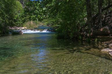 | Keywords: arizona coconino national forest coconinonationalforest forest service forestservice fossil creek fossilcreek k20d national forest nationalforest pentax k20d pentaxk20d red rock ranger district redrockrangerdistrict tonto national forest tontonationalforest usfs waterfall trail waterfalltrail canyon desert forest hiking outdoors spring springtime trail camp verde campverde united states unitedstates landscape water creek outdoor A large, natural waterfall on Fossil Creek is the destination of an easy, one mile hike on Waterfall Trail. A large, deep pool at the base of the fall is a popular swimming hole. Fossil Creek produces 20,000 gallons of water a minute from a series of springs at the bottom of a 1,600 foot deep canyon. This permanent water source has created a stunningly beautiful, green riparian zone rich with flora and fauna at the bottom of this arid canyon in Arizona's high desert. Travertine deposits encase whatever happens to fall into the streambed, forming the fossils for which the area is named. These deposits create deep pools along the length of the creek, providing opportunities to find more secluded swimming holes than the popular pool at the waterfall. Fossil Creek is one of two "Wild and Scenic" rivers in Arizona. This designation was achieved when the Irving power plant was decommissioned, and removal of flume and dam on the creek allowed the creek to flow free. Increasing popularity has led to the Coconino and Tonto National Forests to implement a parking permit reservation system in 2016. Reserved parking permits allow visitors to have a parking spot available in their chosen parking lot. Many visitors drive two or three hours to get to the creek. The final descent to the creek at the bottom of a canyon is on an extremely rough, rocky jeep road. In prior years, the area would often be closed to entry when it reached capacity, and potential visitors would be turned away after the long, difficult drive. Photo by Deborah Lee Soltesz, May 4, 2016. For trail and recreation information, see Fossil Creek, Fossil Springs Wilderness, and the Coconino National Forest. A large, natural waterfall on Fossil Creek is the destination of an easy, one mile hike on Waterfall Trail. A large, deep pool at the base of the fall is a popular swimming hole. Fossil Creek produces 20,000 gallons of water a minute from a series of springs at the bottom of a 1,600 foot deep canyon. This permanent water source has created a stunningly beautiful, green riparian zone rich with flora and fauna at the bottom of this arid canyon in Arizona's high desert. Travertine deposits encase whatever happens to fall into the streambed, forming the fossils for which the area is named. These deposits create deep pools along the length of the creek, providing opportunities to find more secluded swimming holes than the popular pool at the waterfall. Fossil Creek is one of two "Wild and Scenic" rivers in Arizona. This designation was achieved when the Irving power plant was decommissioned, and removal of flume and dam on the creek allowed the creek to flow free. Increasing popularity has led to the Coconino and Tonto National Forests to implement a parking permit reservation system in 2016. Reserved parking permits allow visitors to have a parking spot available in their chosen parking lot. Many visitors drive two or three hours to get to the creek. The final descent to the creek at the bottom of a canyon is on an extremely rough, rocky jeep road. In prior years, the area would often be closed to entry when it reached capacity, and potential visitors would be turned away after the long, difficult drive. Photo by Deborah Lee Soltesz, May 4, 2016. For trail and recreation information, see Fossil Creek, Fossil Springs Wilderness, and the Coconino National Forest. |