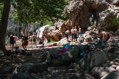 | Keywords: arizona camp verde campverde coconino national forest coconinonationalforest forest service forestservice fossil creek fossilcreek k20d national forest nationalforest pentax k20d pentaxk20d red rock ranger district redrockrangerdistrict tonto national forest tontonationalforest usfs verde valley verdevalley waterfall trail waterfalltrail canyon creek desert forest guitar hiking outdoors riparian spring springtime trail water waterfall united states unitedstates outdoor This large, natural waterfall on Fossil Creek is the destination of an easy, one mile hike on Waterfall Trail. A large, deep pool at the base of the fall is a popular swimming hole. Fossil Creek produces 20,000 gallons of water a minute from a series of springs at the bottom of a 1,600 foot deep canyon. This permanent water source has created a stunningly beautiful, green riparian zone rich with flora and fauna at the bottom of this arid canyon in Arizona's high desert. Travertine deposits encase whatever happens to fall into the streambed, forming the fossils for which the area is named. These deposits create deep pools along the length of the creek, providing opportunities to find more secluded swimming holes than the popular pool at the waterfall. Fossil Creek is one of two "Wild and Scenic" rivers in Arizona. This designation was achieved when the Irving power plant was decommissioned, and removal of flume and dam on the creek allowed the creek to flow free. Increasing popularity has led to the Coconino and Tonto National Forests to implement a parking permit reservation system in 2016. Reserved parking permits allow visitors to have a parking spot available in their chosen parking lot. Many visitors drive two or three hours to get to the creek. The final descent to the creek at the bottom of a canyon is on an extremely rough, rocky jeep road. In prior years, the area would often be closed to entry when it reached capacity, and potential visitors would be turned away after the long, difficult drive. Photo by Deborah Lee Soltesz, May 12, 2016. For trail and recreation information, see Fossil Creek, Fossil Springs Wilderness, and the Coconino National Forest. This large, natural waterfall on Fossil Creek is the destination of an easy, one mile hike on Waterfall Trail. A large, deep pool at the base of the fall is a popular swimming hole. Fossil Creek produces 20,000 gallons of water a minute from a series of springs at the bottom of a 1,600 foot deep canyon. This permanent water source has created a stunningly beautiful, green riparian zone rich with flora and fauna at the bottom of this arid canyon in Arizona's high desert. Travertine deposits encase whatever happens to fall into the streambed, forming the fossils for which the area is named. These deposits create deep pools along the length of the creek, providing opportunities to find more secluded swimming holes than the popular pool at the waterfall. Fossil Creek is one of two "Wild and Scenic" rivers in Arizona. This designation was achieved when the Irving power plant was decommissioned, and removal of flume and dam on the creek allowed the creek to flow free. Increasing popularity has led to the Coconino and Tonto National Forests to implement a parking permit reservation system in 2016. Reserved parking permits allow visitors to have a parking spot available in their chosen parking lot. Many visitors drive two or three hours to get to the creek. The final descent to the creek at the bottom of a canyon is on an extremely rough, rocky jeep road. In prior years, the area would often be closed to entry when it reached capacity, and potential visitors would be turned away after the long, difficult drive. Photo by Deborah Lee Soltesz, May 12, 2016. For trail and recreation information, see Fossil Creek, Fossil Springs Wilderness, and the Coconino National Forest. |
