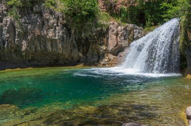 Keywords: arizona coconino national forest coconinonationalforest forest service forestservice fossil creek fossilcreek k20d national forest nationalforest pentax k20d pentaxk20d red rock ranger district redrockrangerdistrict tonto national forest tontonationalforest usfs waterfall trail waterfalltrail canyon desert forest hiking outdoors spring springtime trail camp verde campverde united states unitedstates water landscape waterfall outdoor creek watercourse A large, natural waterfall on Fossil Creek is the destination of an easy, one mile hike on Waterfall Trail. A large, deep pool at the base of the fall is a popular swimming hole. Fossil Creek produces 20,000 gallons of water a minute from a series of springs at the bottom of a 1,600 foot deep canyon. This permanent water source has created a stunningly beautiful, green riparian zone rich with flora and fauna at the bottom of this arid canyon in Arizona's high desert. Travertine deposits encase whatever happens to fall into the streambed, forming the fossils for which the area is named. These deposits create deep pools along the length of the creek, providing opportunities to find more secluded swimming holes than the popular pool at the waterfall. Fossil Creek is one of two "Wild and Scenic" rivers in Arizona. This designation was achieved when the Irving power plant was decommissioned, and removal of flume and dam on the creek allowed the creek to flow free. Increasing popularity has led to the Coconino and Tonto National Forests to implement a parking permit reservation system in 2016. Reserved parking permits allow visitors to have a parking spot available in their chosen parking lot. Many visitors drive two or three hours to get to the creek. The final descent to the creek at the bottom of a canyon is on an extremely rough, rocky jeep road. In prior years, the area would often be closed to entry when it reached capacity, and potential visitors would be turned away after the long, difficult drive. Photo by Deborah Lee Soltesz, May 4, 2016. For trail and recreation information, see Fossil Creek, Fossil Springs Wilderness, and the Coconino National Forest. A large, natural waterfall on Fossil Creek is the destination of an easy, one mile hike on Waterfall Trail. A large, deep pool at the base of the fall is a popular swimming hole. Fossil Creek produces 20,000 gallons of water a minute from a series of springs at the bottom of a 1,600 foot deep canyon. This permanent water source has created a stunningly beautiful, green riparian zone rich with flora and fauna at the bottom of this arid canyon in Arizona's high desert. Travertine deposits encase whatever happens to fall into the streambed, forming the fossils for which the area is named. These deposits create deep pools along the length of the creek, providing opportunities to find more secluded swimming holes than the popular pool at the waterfall. Fossil Creek is one of two "Wild and Scenic" rivers in Arizona. This designation was achieved when the Irving power plant was decommissioned, and removal of flume and dam on the creek allowed the creek to flow free. Increasing popularity has led to the Coconino and Tonto National Forests to implement a parking permit reservation system in 2016. Reserved parking permits allow visitors to have a parking spot available in their chosen parking lot. Many visitors drive two or three hours to get to the creek. The final descent to the creek at the bottom of a canyon is on an extremely rough, rocky jeep road. In prior years, the area would often be closed to entry when it reached capacity, and potential visitors would be turned away after the long, difficult drive. Photo by Deborah Lee Soltesz, May 4, 2016. For trail and recreation information, see Fossil Creek, Fossil Springs Wilderness, and the Coconino National Forest.