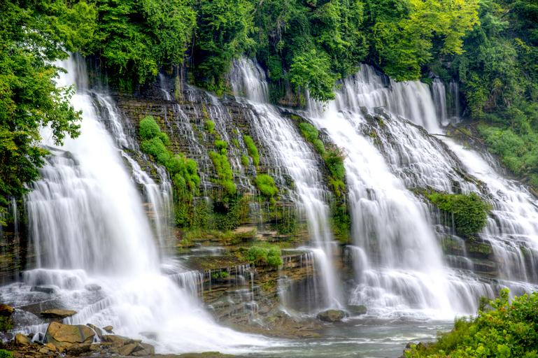 Keywords: waterfall twins fall landscape nature travel mountain environment nature landscape green peaceful tennessee