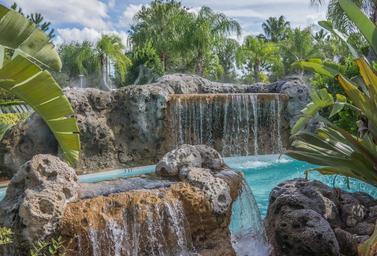 Keywords: waterfall water park pool rocks nature stream green rock outdoor travel summer cascade natural flow scenery tourism stone vacation tree tropical scenic landscape