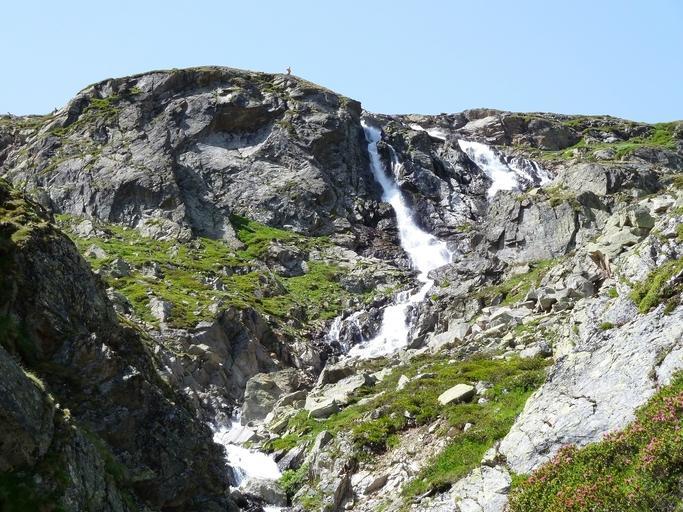 Keywords: waterfall water rock cliffs mountain switzerland sunny summer large