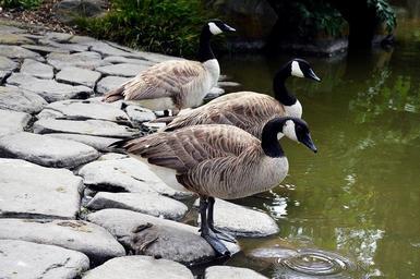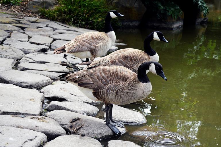 Keywords: waterfowl geese park botanical botanical garden goose gaggle pond california bay landscape garden city gardening urban outdoor drinking habitation bird nature lake water rocks