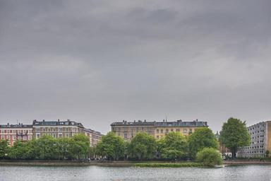 Keywords: waterfront buildings city architecture urban water view river park trees apartments houses historic europe