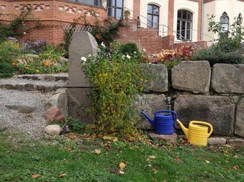 Keywords: watering can garden stone wall schlossgarten